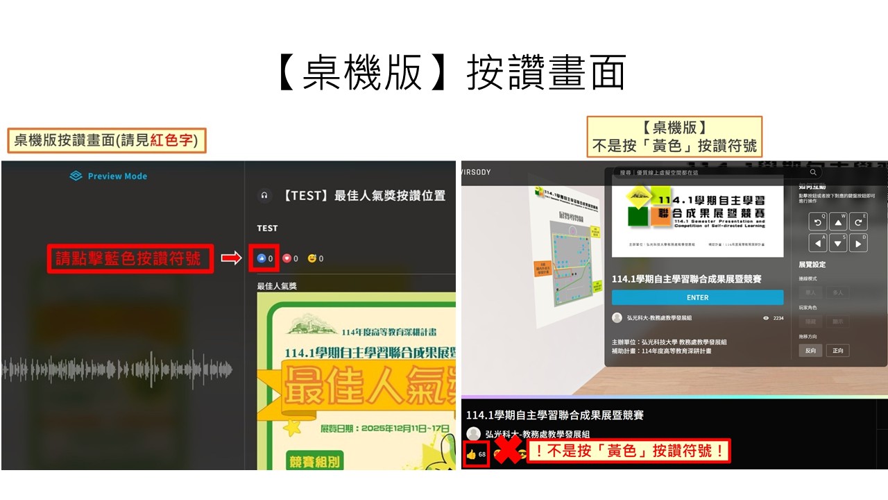 (二)本次競賽增設最佳人氣獎,活動期間內歡迎全校教職員生至Virsody(3D線上展覽平台)瀏覽各組作品,並在線上空間內為學生作品按讚,按讚數最高的組別可獲得精美禮品乙份。