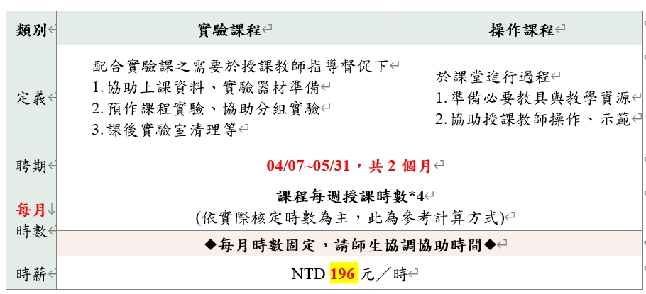 若系上操作/實驗課程預計為新進教師授課且須有TA協助課程,須由【系上先行提出申請】;若於審查結束後提出,需請系所依核定名額進行調整補助課程。