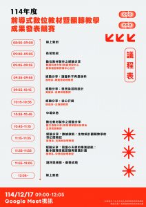 一、活動時間:114年12月17日(三) 09:00-12:00