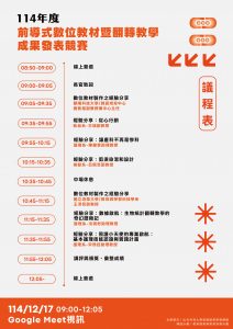 一、活動時間:114年12月17日(三) 09:00-12:00